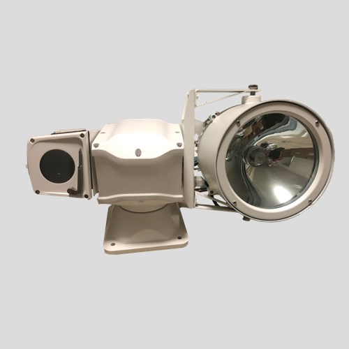 探照燈云臺攝像機采用2000W的疝氣白光燈、200萬20倍5.4-108mm的一體化機芯和高清網絡云臺集合而成,照明距離遠達800米,廣泛應用于室外全黑環境,比如監獄外圍、礦區等。