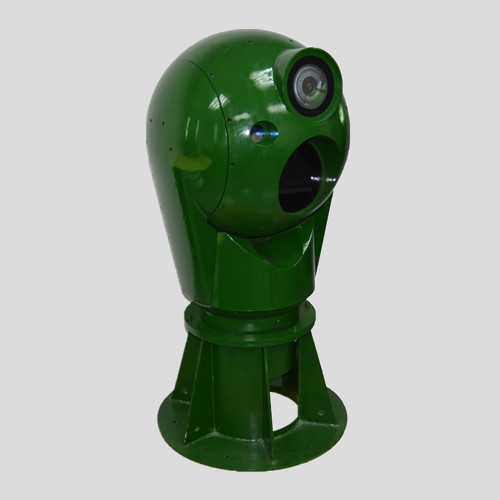 自動(dòng)跟蹤球型光電轉(zhuǎn)臺(tái)攝像機(jī)采用陀螺穩(wěn)定超強(qiáng)抗風(fēng)轉(zhuǎn)臺(tái)、低照度高清透霧攝像機(jī)、高清透霧鏡頭、熱成像儀,軍用大功率激光器(選用),通過(guò)科學(xué)、先進(jìn)的手段集合而成,具有背景反差好、成像清晰、使用高分辨率低照度彩轉(zhuǎn)黑攝像機(jī),可進(jìn)行晝夜對(duì)目標(biāo)的識(shí)別、監(jiān)測(cè)、手動(dòng)鎖定、自動(dòng)追蹤、測(cè)向預(yù)判,將視頻畫面?zhèn)骰貦C(jī)房及指揮中心(總部),可以拉遠(yuǎn)拉近看,以便領(lǐng)導(dǎo)做出決策,如拉警號(hào)預(yù)警將人員疏散或者藏進(jìn)防空洞等,但不擊打及干預(yù)目標(biāo)物。